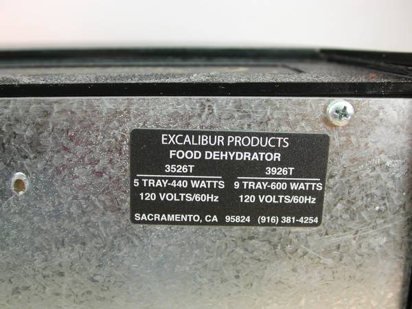 Model : 5 Excalibur 3526T Food Dehydrator 5 Tray