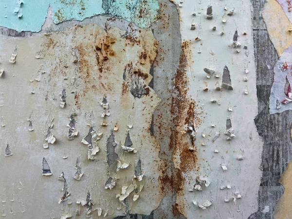 Recently completed large original abstract painting. For sale by artist. “Salvage Yard.” A lot of colors. Bright. Primary colors: light green and beige and light blue and white. 5’X8’ / 60”X96”X1.5”...