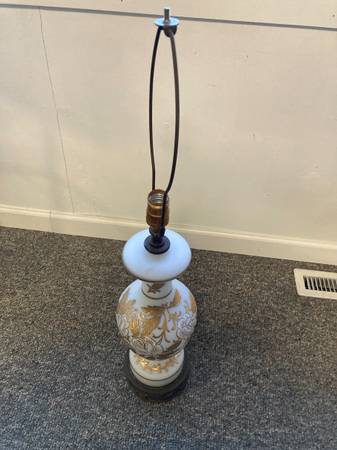 Mid Century Milk Glass Table Lamp Gold Roses Embossed working order - $35 (Frenchtown, NJ)