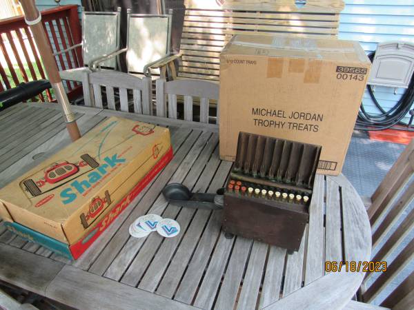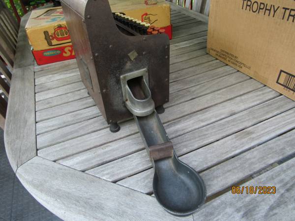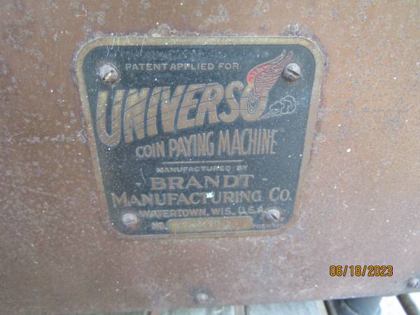 Brandt 1920s Universo Coin Paying Machine Fully Working Rare. This item is an antique Brandt "Universo Coin Paying Machine" (changer). I believe this is a very early model, dating back to the 1920's or earlier. The two name plates say: "Patent Applied For, Universo Coin Paying Machine, Manufactured by Brandt Manufacturing Co., Watertown, Wis., USA" The "o" in Universo is adorned with iconic "wings." One thing that makes me think it's a very early model is the fact that later models specify patent numbers rather than "patent applied for." Also, later models are called "coin changers" rather than "coin payers." It is very heavy and the construction looks somewhat primitive compared to later models, with thick, flat metal panels and screws, rather than molded panels. It is in excellent condition, heavy brown metal, one edge is a little bent. Miraculously all the denomination buttons are still there and work. Each button dispensed the correct change except the half dollar because I didn't have one, the dispense rod does work. Has both name plates. Has all 4 original legs as well as the rubber now very brittle rubber foot pad. One rubber foot pad is missing. It is basically an old-fashioned manual change machine. Stack coins in the back, press the keys, and the coins slide down the platform and out the side. This saved time back in the day to make change. It measures 20" wide including shoot x 6.5" deep x 12" tall. It's quite large and weighs almost 14 pounds. A great early American business machine! More great vintage items on Craigslist. I have other toys and advertising for sale on Craigslist and Facebook Marketplace. If interested please enter dave rave into the central jersey search bar to see it all. Please ask any questions that you may have via email or text. Unlike Ebay or auctions I charge no tax, shipping charge or buyers premium for Craigslist or Facebook purchases that are picked. Thank you, Dave