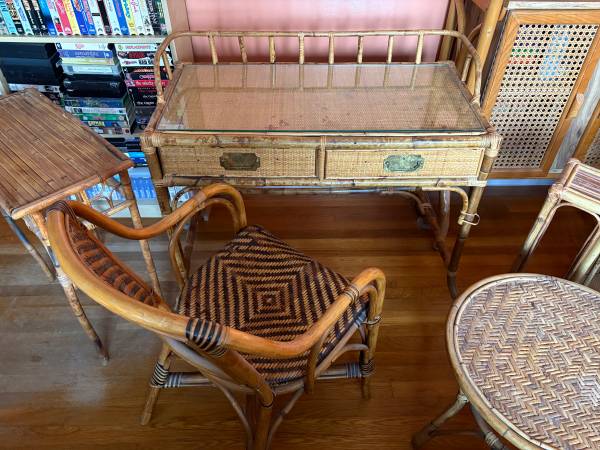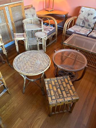 Includes everything posted in the pictures………..couch,chairs,desk,tea cart,coffee table,cabinet,glass shelf stand,magazine rack,corner table and lamp,large mirror,sofa table +++++.Call or text (609)9one5-6997 if interested in purchasing.Only cash 💵 accepted as payment on pickup.If you read this post than it’s still for sale so no need to ask if it’s available.