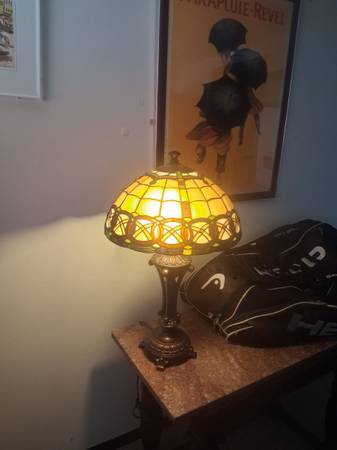 26" tall, shade diameter 16" base 6" Small crack as pictured