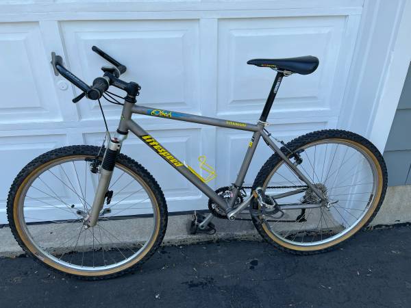 Litespeed Obed, Front Suspension Mountain Bike. A great titanium bike made in USA. Medium size - 16.5in, weight 25lbs. Mounted with caged pedals but will include new Shimano SPD pedals. Bike has been ridden and used but is in very good condition. No bents or damage to the frame or components.