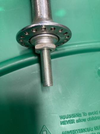 Fair to good chrome with pepper pitting, complete with new axle and bearings, missing mounting hardware.