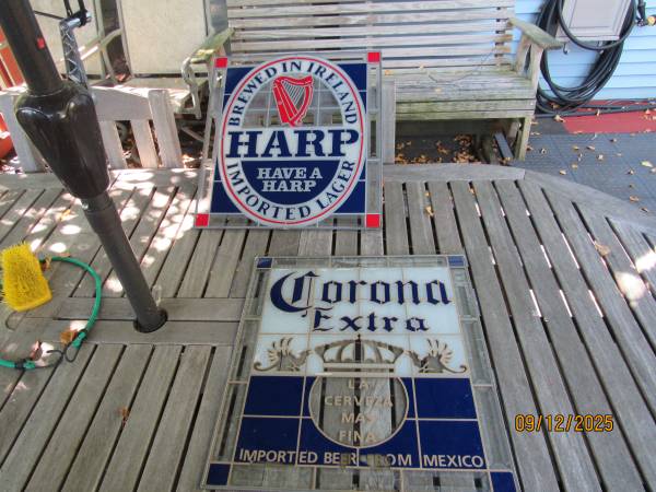 CORONA BEER VINTAGE STAINED GLASS ADVERTISING SIGN 16 X 18. Here is a nice old Corona Extra LA Cerveza Mas Fina Leaded Stained Glass beer sign made of all heavy glass with a lead border. Made by Gambrinus Importing Co. No cracks or damage. There is some spidering to the litho due to age. It has the hang wire. Great for that man cave. Very well made. I have another one of these listed that has some damage in one corner plus I have one of these type signs for Harp Beer, also listed. I have vintage toys and advertising for sale on Craigslist and Facebook Marketplace. If interested please enter dave rave into the central jersey search bar to see it all. Please ask any questions that you may have via email or text. Unlike Ebay or auctions I charge no tax, shipping charge or buyers premium for Craigslist or Facebook purchases that are picked up or handed off. Thank you, Dave