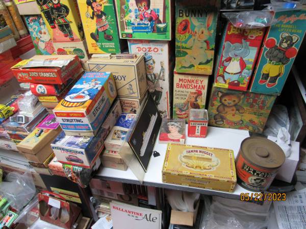 Sir Walter Raleigh Tin and Tampa Nugget Cigar Box plus a large sealed cigar, 1940s. Here are three vintage tobacco items. The first is the Sir Walter Raleigh tin, I think it held a pound of tobacco. It does have wear and some rust. Has a couple dents in the back. It's 5" x 5". Has the lid. Displays nice, has not been cleaned. Next is the Tampa Nugget cigar box Sublimes. The box is in very good condition. The inside label is excellent. 2 for 15 cents tells it's age. It is a little over 9" long. Lastly is a very large 10 inch sealed cigar which was a souvenir of Washington DC. The bottom has a chip out of it. Very unusual. All three for one money. More great vintage items on Craigslist. I have other toys and advertising for sale on Craigslist and Facebook Marketplace. Please ask any questions that you may have via email or text. Unlike Ebay or auctions I charge no tax, shipping charge or buyers premium for Craigslist or Facebook purchases that are picked up or handed off. Thank you, Dave
