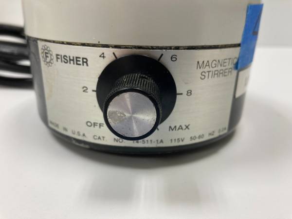 Fisher Magnetic Stirrer #14-511-1A (4.75" diameter) 115V 0.2A 50-60Hz 4.75" diameter cord- approx 76"L tested at different speeds - works well, some dings, scratches, yellow/orange paint dot on...