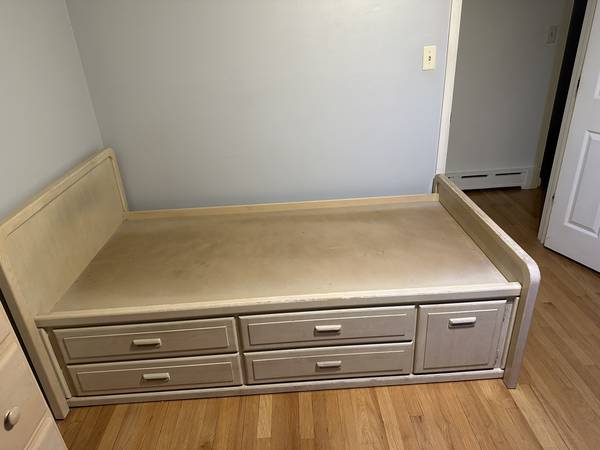 Twin Size Wooden Bed Frame with Draws Sold As Is Pick Up Only Cash Only Please only contact me over text