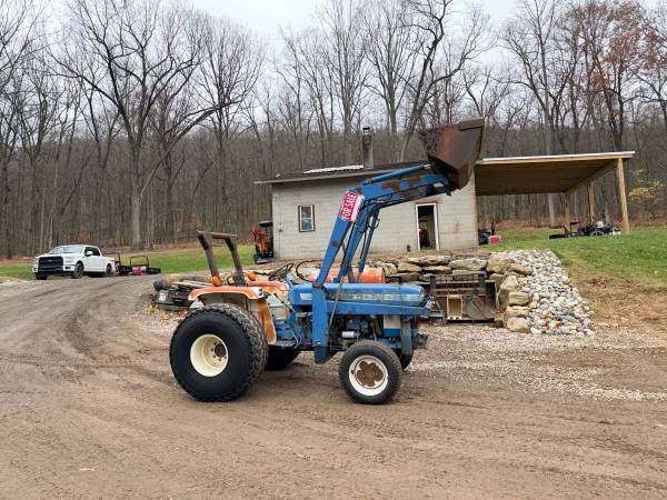 For sale is this mid 1980’s Ford 1910 tractor. This machine runs and operates, it is 32 horsepower diesel with manual transmission and selectable 4WD. This is an older tractor and it could use some TLC such as a new seat, loader valve linkage tightened up, brakes need adjustment or replaced. Priced accordingly, this is a cheap 32hp tractor that is 4WD with a loader, also has rear PTO and 3 point hitch. No power steering from factory but it can be added with a aftermarket kit.