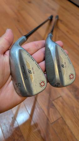 These right-handed men's Titleist Vokey 50 degree wedge and 58 degree wedges are in good used condition. There are some cosmetic blemishes, nothing out of the ordinary for used clubs. The 58 was used more than the 50. See pictures for more details.