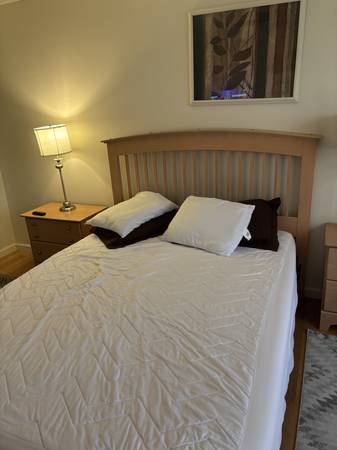 Light wood Queen bedframe/base.