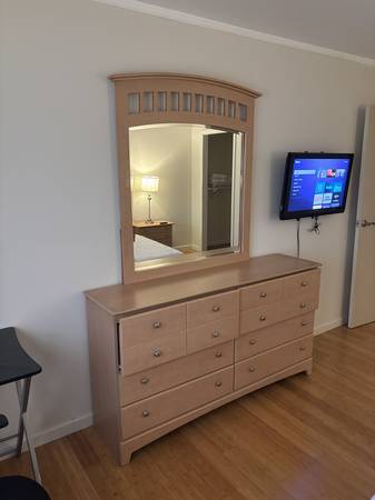 Light wood long dresser with mirror